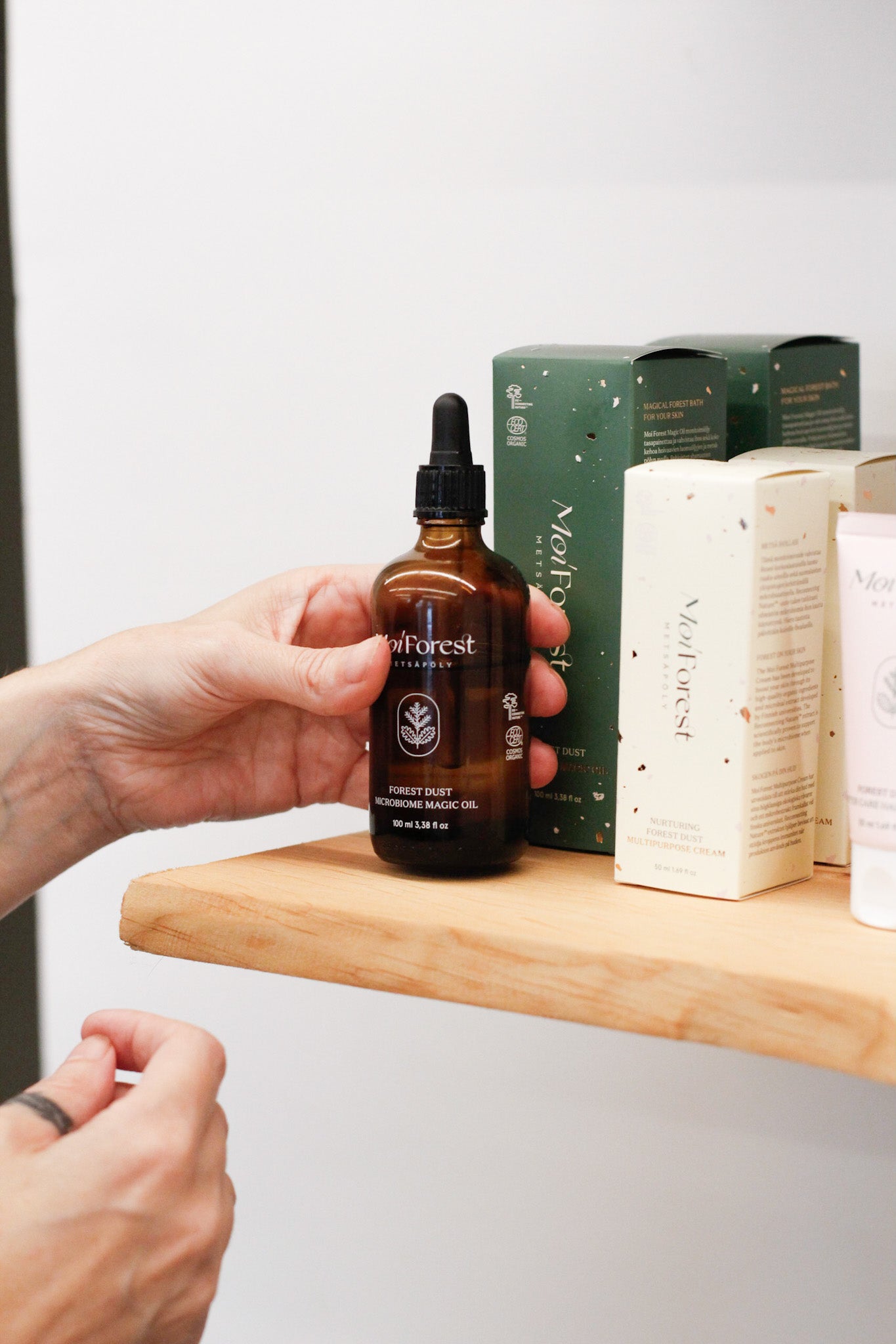 Moi Forest Microbiome Magic Oil monitoimiöljy on uuden ajan ihonhoitoa – yksi tuote ja lukematon määrä eri käyttötapoja! Tämä öljy tasapainottaa ja vahvistaa ihoa sekä koko kehoa hoitavien luomuöljyjen ja metsäpölyn avulla. Lapista kerätty maariantuoksuheinäuute hellii ärtynyttä ihoa ja sen tuoksu auttaa pysymään yhteydessä sisimpäämme myös stressaavina aikoina.